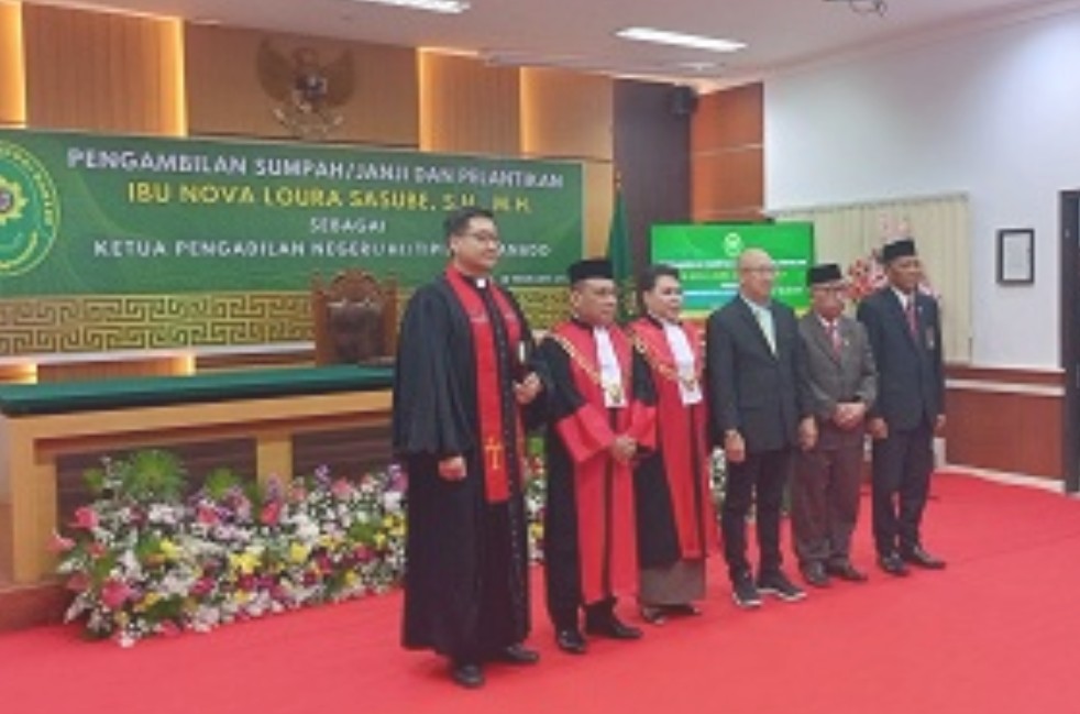 Manado, Merdeka17.id – Nova Loura Sasube, S.H., M.H. diambil sumpah dan dilantik sebagai Ketua Pengadilan Negeri (PN), Tindak Pidana Korupsi (Tipikor) dan Pengadilan Hubungan Industrial (PHI) Kelas 1A Manado pada Rabu, 18 Februari 2026. Sebelumnya, Nova menjabat Ketua PN/Tipikor/PHI dan Perikanan Ambon, menggantikan Achmad Peten Sili, S.H., M.H. yang dipercayakan sebagai Wakil Ketua PN Surakarta.