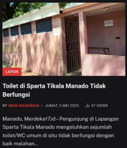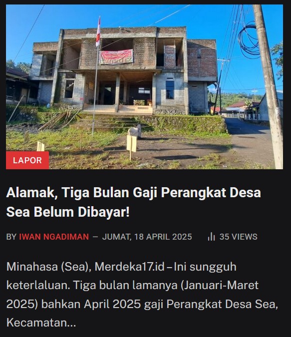 Forum PublikAlamak, Tiga Bulan Gaji Perangkat Desa Sea Belum Dibayar!Kadis Porada Sulut Mengaku Dirinya Pemberi Perintah Tebang Pohon di Gelora Wolter Mongisidi (6)Kepala Dinas Kepemudaan dan Olah Raga Daerah Provinsi Sulawesi Utara Jemmy Ringkuangan. (Foto: Iwan Ngadiman). Aksi Damai ADAKSI: Tuntut Rektor Unsrat MundurTuntut Rektor Unsrat mundur. (Foto: Iwan Ngadiman).