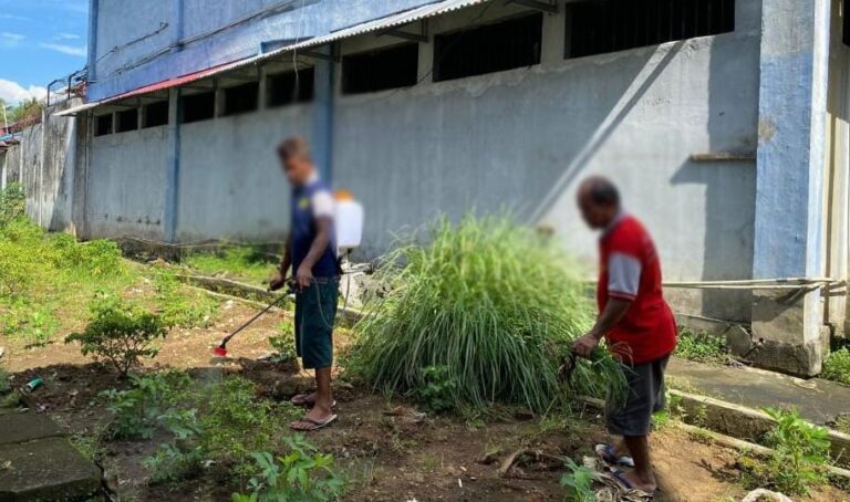 Merdeka17.id – Dalam rangka mendukung program ketahanan pangan nasional, Warga binaan Pemasyarakatan di Rumah Tahanan Negara (Rutan) Kelas IIA Manado turut berpartisipasi aktif dengan rutin melakukan pembersihan dan penyemprotan pupuk untuk tanaman yang di tanam di area branggang.